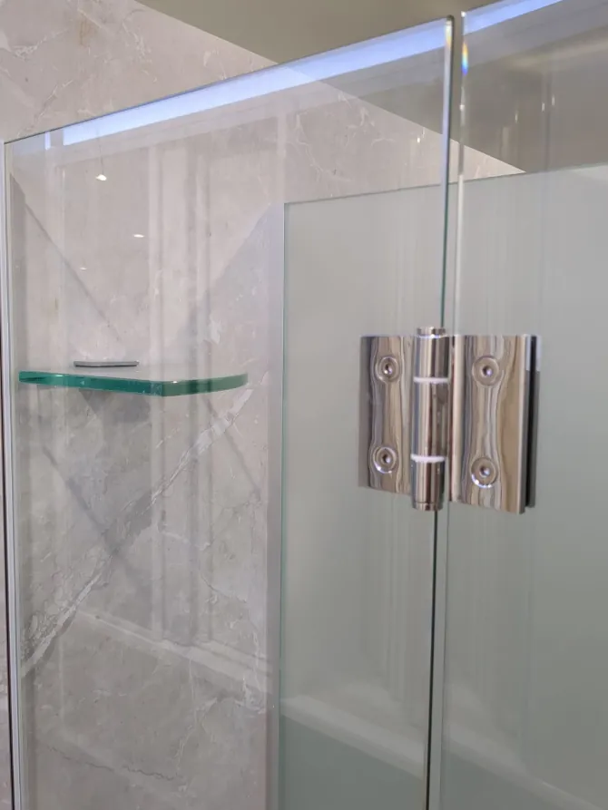 - Polished vertical glass edges on door and inline panel